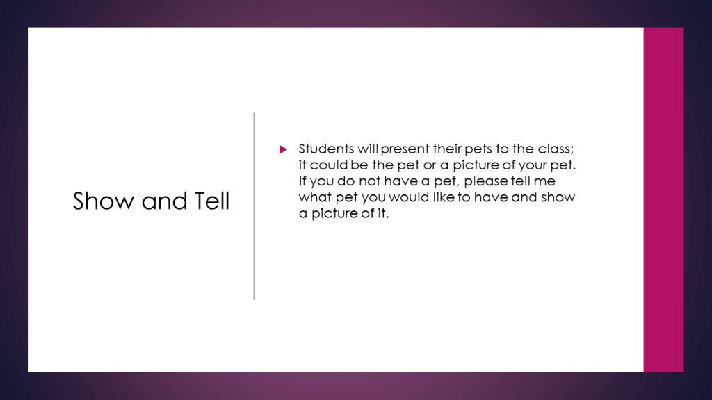 Show and Tell 4th and 5th grade.